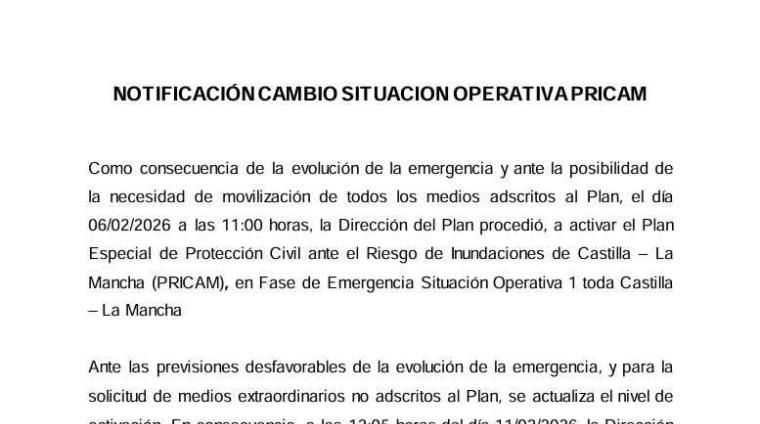 ACTIVADA LA SITUACIÓN OPERATIVA 2 DEL PRICAM EN CASTILLA-LA MANCHA