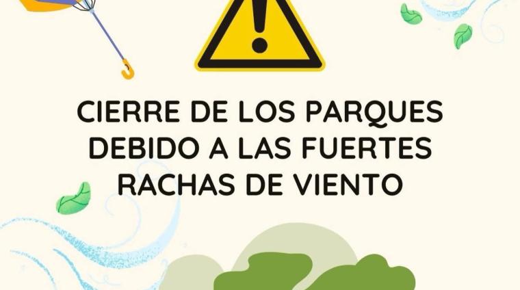 Debido a las fuertes rachas de viento, todos los parques de nuestro municipio permanecerán cerrados durante el día de hoy y mañana sábado con el