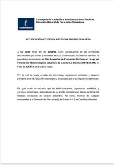 El Gobierno regional activa el METEOCAM en toda CLM, ante la previsión de fuertes lluvias y tormentas durante el día de hoy.