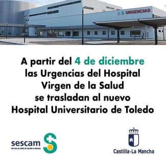 Desde el próximo sábado 4 de diciembre, el Servicio de Urgencias se prestará en el nuevo Hospital Universitario de Toledo.