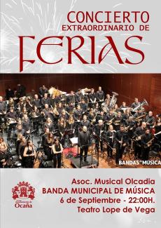 Concierto extraordinario de Ferias a cargo de la Banda Municipal de Música, con un escogido repetorio que servirá de pórtico a nuestras fiestas patronales.