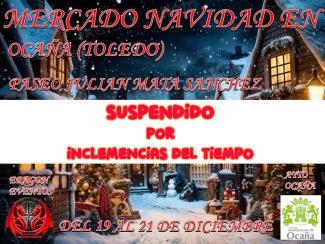 Debido a las predicciones meteorológicas adversas para este fin de semana se suspende el "Mercadillo Navideño"