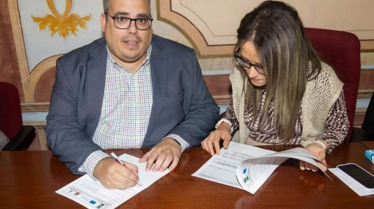 El Teniente de Alcalde de Ocaña, Juan José Rodríguez, firmando junto a la Viceconsejera de Política Agraria Comun y Política Agroambiental de Castilla la Mancha