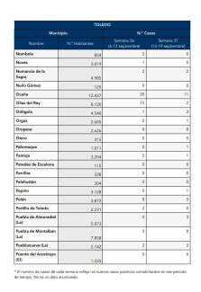 Municipio de Ocaña, semana 36 (del 6 al 12 de septiembre) = 20 contagios COVID-19 y semana 37 (del 13 al 19 de septiembre ) = 11 contagios COVID-19