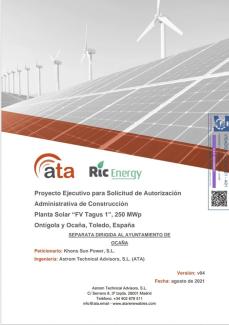Según comunicación del Area de Industria y Energía de la Subdelegación del Gobierno, la empresa Ric Energy - Khons Sun Power S.L ha solicitado la tramitación de la Autorización Administrativa Previa, Autorización Administrativa de Construcción y la Declaración de Impacto Ambiental de los Proyectos de dos Plantas Solares Fotovoltaicas "Tagus 1" y "Tagus 2" situada en los términos municipales de Ocaña y Ontigola. La exposición pública ha sido publicada en el BOE número 209 del 1 de septiembre de 2021.