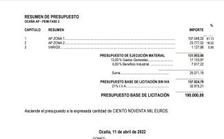 De ellos, 238.282,50 euros irán a nuestro pueblo para financiar Renovación de Alumbrado Publico a Tecnología LED (190.000 euros) y Reforma Parque calle Isabel de Castilla (48.282,50 euros) unidos a los 112.000 euros del Plan Provincial 2022 del proyecto de asfaltado de calles.(323.000 euros).