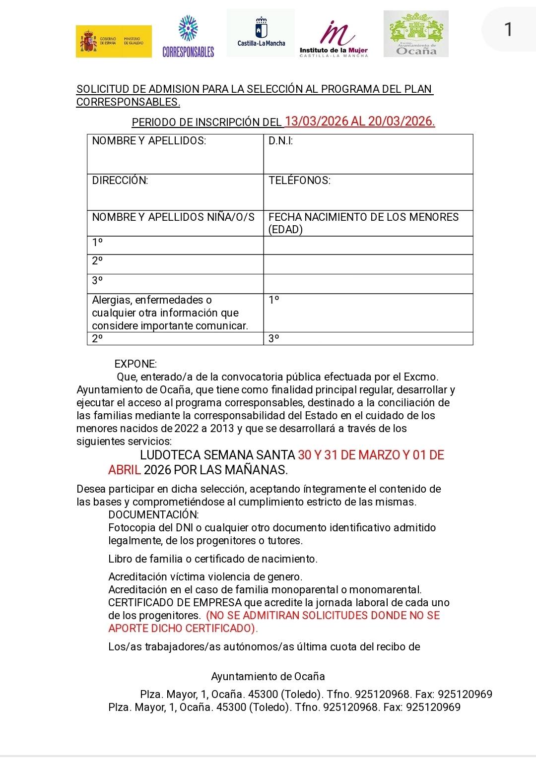 Inscripciones del 13 al 20 de marzo en el registro del ayuntamiento