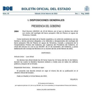 LUTO OFICIAL POR EL NAUFRAGIO DEL PESQUERO "VILLA DE PITANXO"