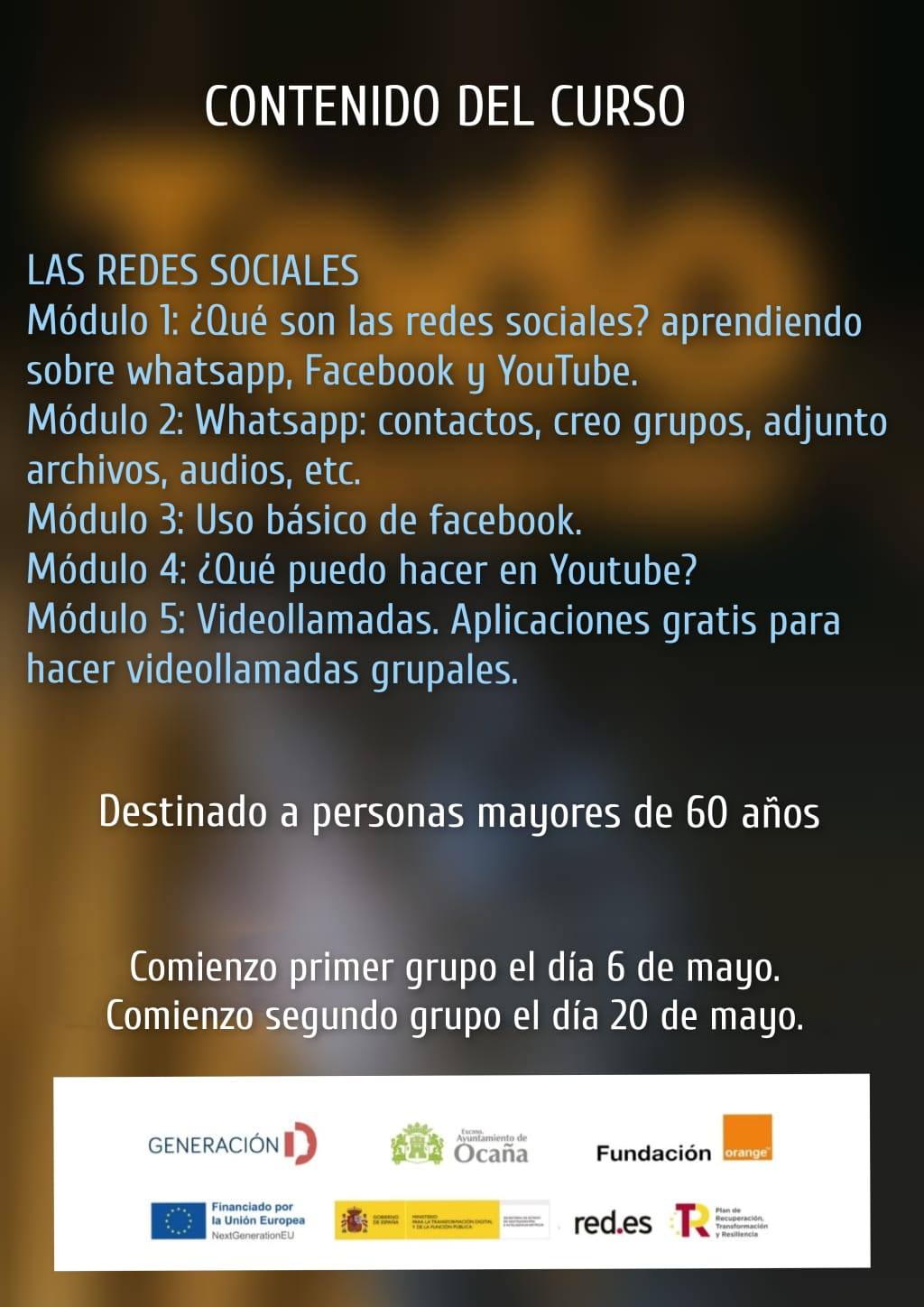 Cursos gratuitos destinados a mayores de 60 años.