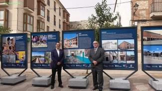 El Alcalde de Ocaña, Eduardo Jiménez junto con el Delegado Provincial de la Junta, Javier Úbeda, concejales del Ayuntamiento y Reina y Damas han recorrido la exposición de 21 paneles donde se expresa la transformación de los municipios toledanos durante los 40 años de vigencia del Estatuto de Autonomía de Castilla la Mancha.