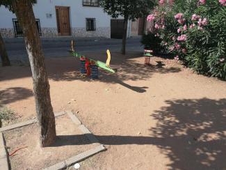 Se ha restaurado los juegos infantiles existentes, se ha instalado una valla perimetral de madera y pavimento de seguridad de caucho.