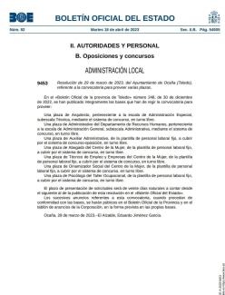RESOLUCIÓN DEL AYUNTAMIENTO DE OCAÑA REFERENTE A LA CONVOCATORIA DE DIFERENTES PLAZAS