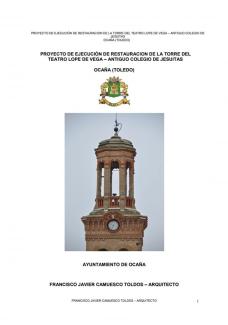 Recibida la autorización por parte de la Delegación Provincial de Educación y Cultura, la Junta de Gobierno Local del Ayuntamiento de Ocaña ha aprobado el Proyecto de Ejecución de la Restauración de la Torre del Teatro Lope de Vega realizado por el arquitecto Francisco Javier Camuesco Toldos con un presupuesto de 245.015,25 €.
