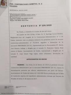 Asimismo, el pasado lunes día 26 de octubre se recibió sentencia de fecha 9 de octubrede 2020 del Juzgado Contencioso Administrativo n°2 de Toledo en el que se estima el recurso interpuesto por Oscar Gete Bargas contra el Ayuntamiento por las obras de la calle Mirador de la Fuente por lo que tenemos que pagar 930.103,66 euros a la empresa que realizó la obra de la citada calle.