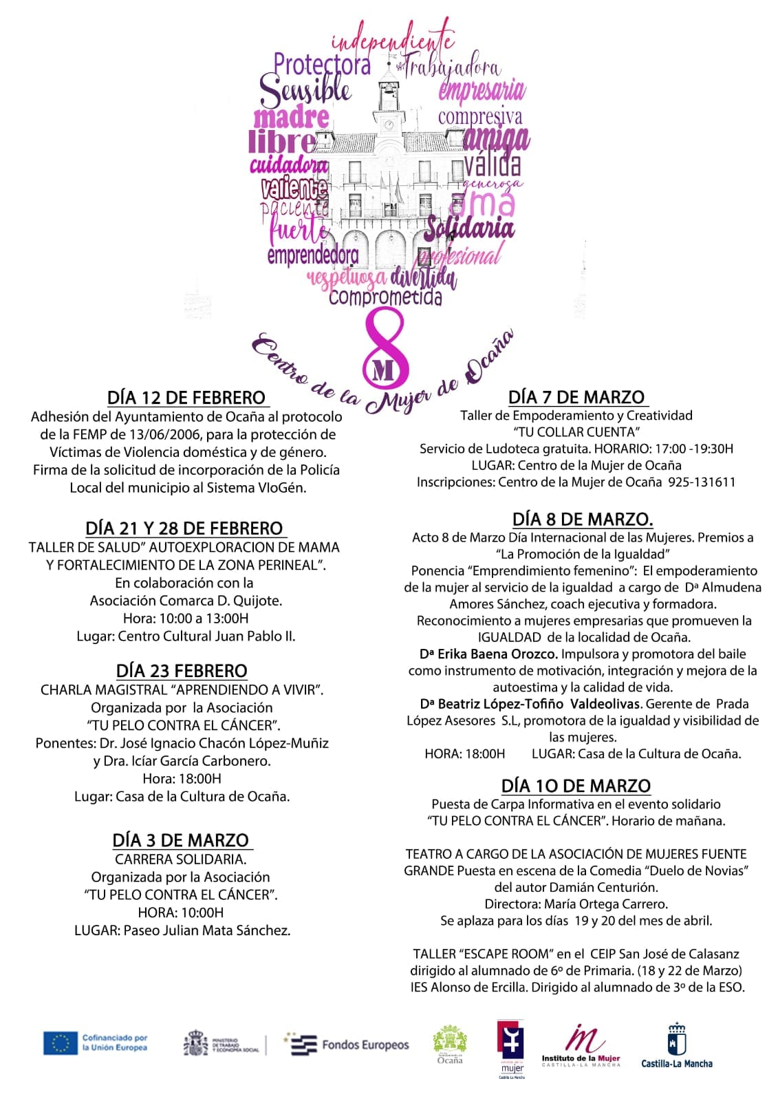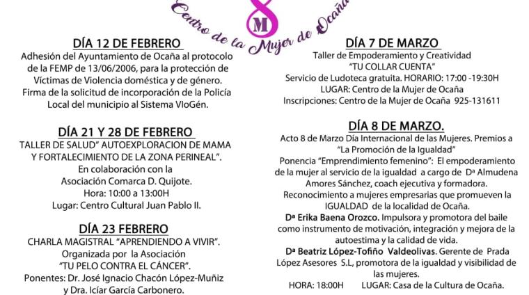 Este año se han organizado las siguientes actividades. Mas información en el Centro de la Mujer de Ocaña C/ La Rosa 13 Teléfono 925 13
