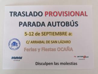 Del 5 al 12 de septiembre, la Parada de Autobús se situará en Calle Arrabal de San Lázaro.