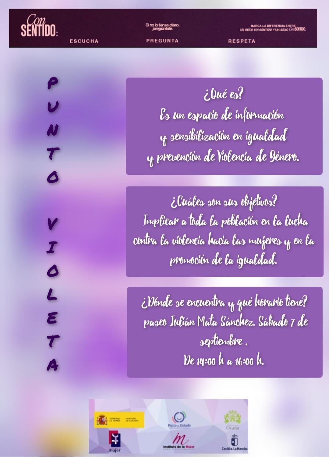 El Punto Violeta estará presente en nuestras fiestas patronales. Es un espacio de información y sensibilización en igualdad y prevención de violencia de género.