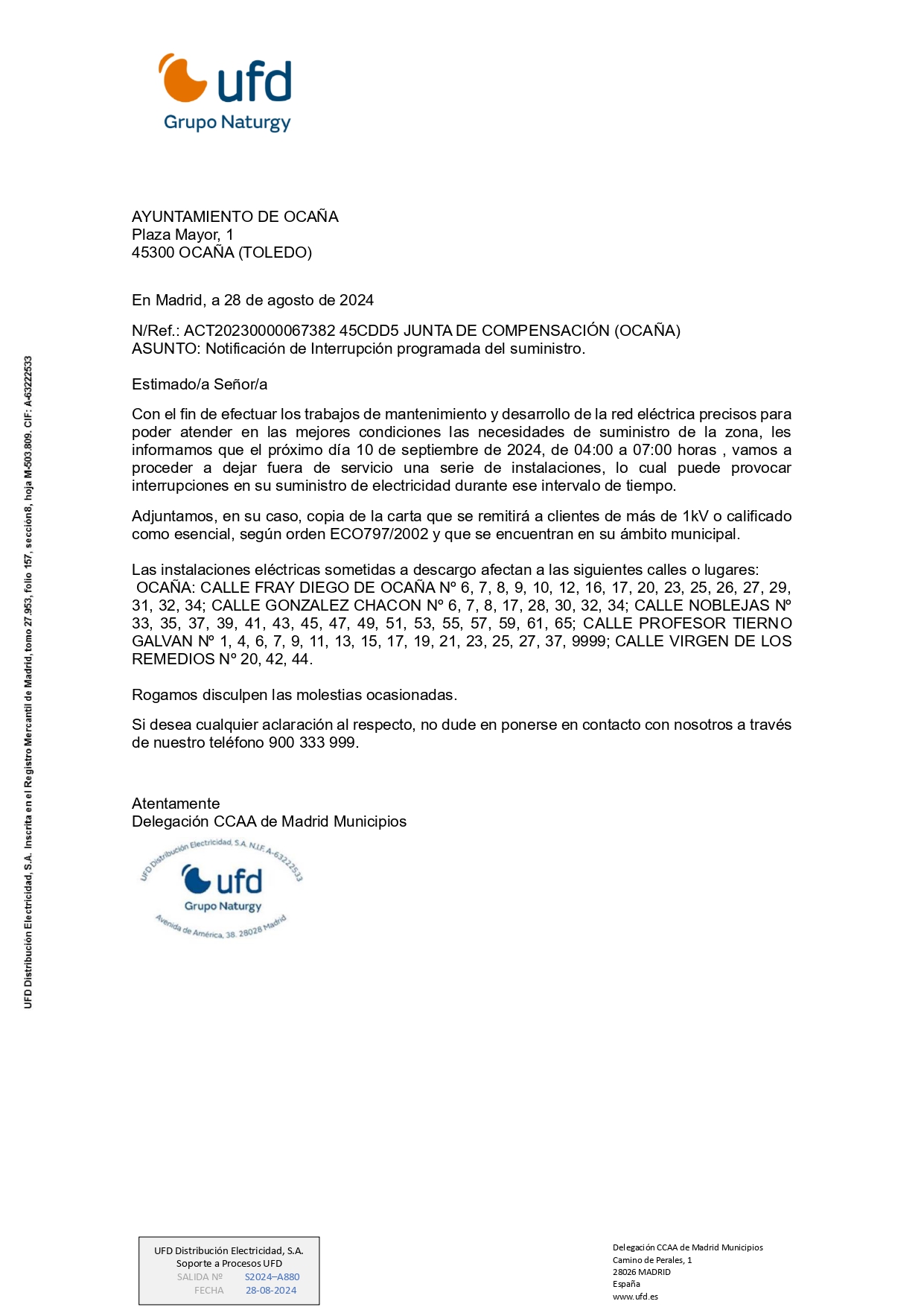 El Ayuntamiento de Ocaña informa: Desde el 4 de septiembre al 11 de septiembre (inclusive) se suspende el Servicio de Establecimiento Regulado (zona azul) con