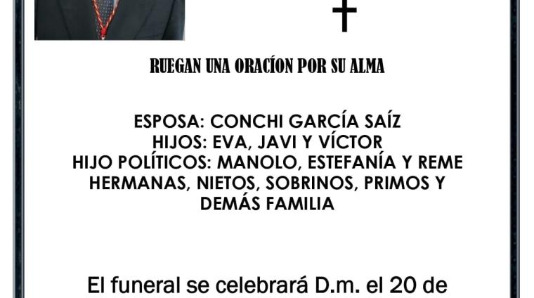 El funeral se celebrará el 20 de septiembre a las 20.30 h. en la Iglesia de San Juan Bautista siendo aplicado por su eterno descanso.