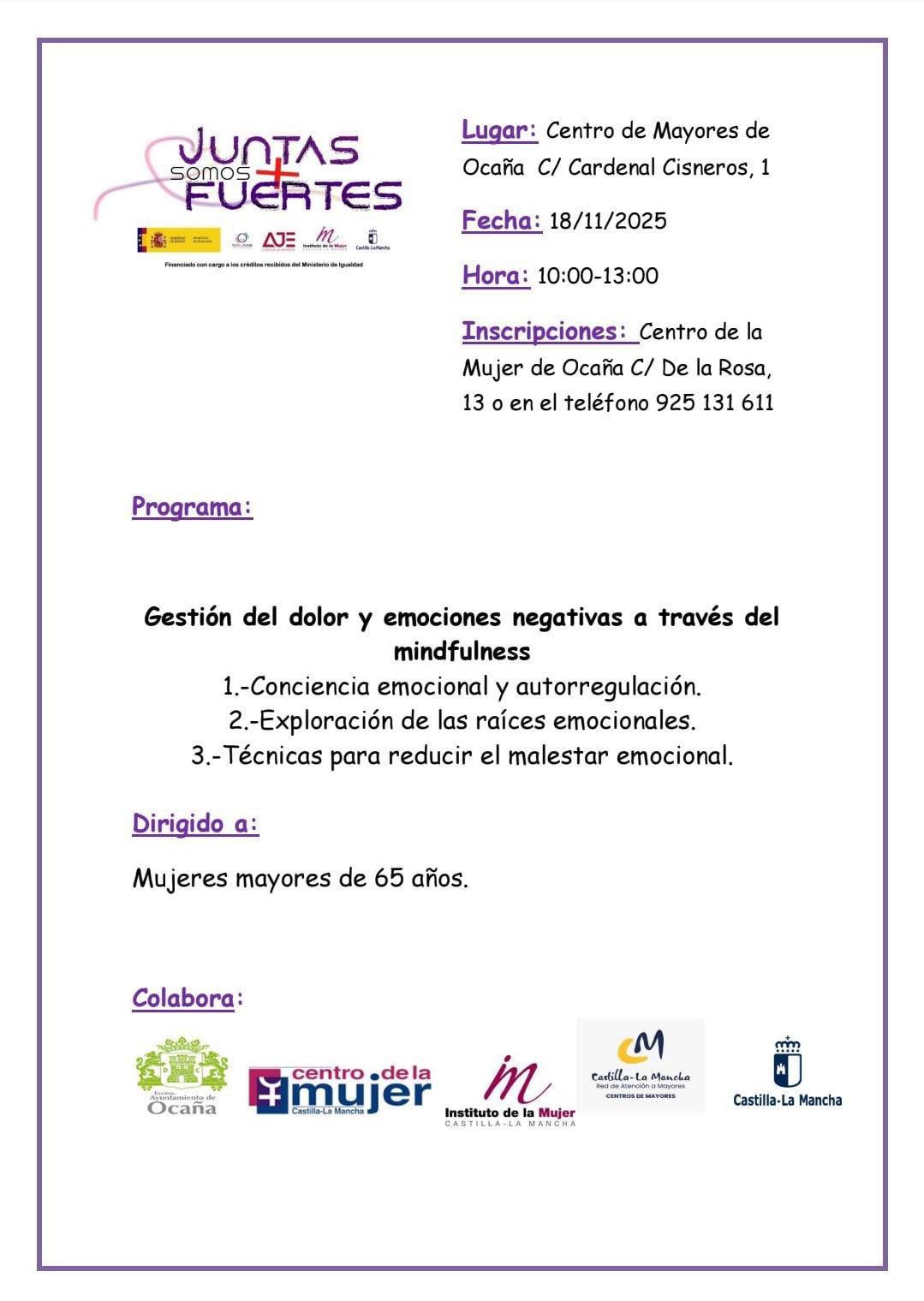 GESTIÓN DEL DOLOR Y EMOCIONES NEGATIVAS A TRAVÉS DEL MINDFULNESS 1. Conciencia emocional y autorregulación. 2. Exploración de las raíces emocionales. 3. Técnicas para reducir