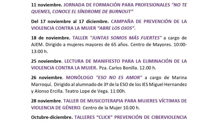Consulta en la imagen adjunta todas las actividades previstas durante el mes de noviembre.