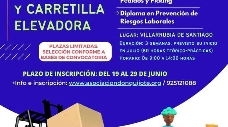 Carné de Carretilla Frontal + Retráctil + Transpaleta. Lugar: VILLARRUBIA DE SANTIAGO Duración y fecha prevista de realización: 3 semanas en julio. 80 horas teórico-prácticas