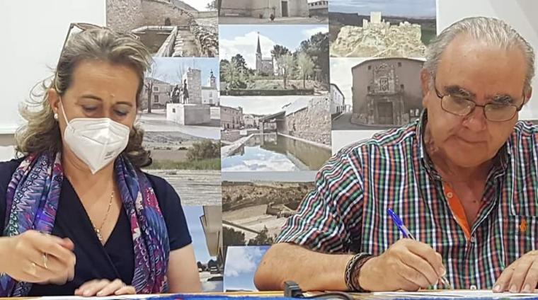 El Alcalde de Ocaña, Eduardo Jiménez, firmando los contratos con la Presidenta de la Asociación Comarcal Don Quijote, para la construcción de Pista de Pádel