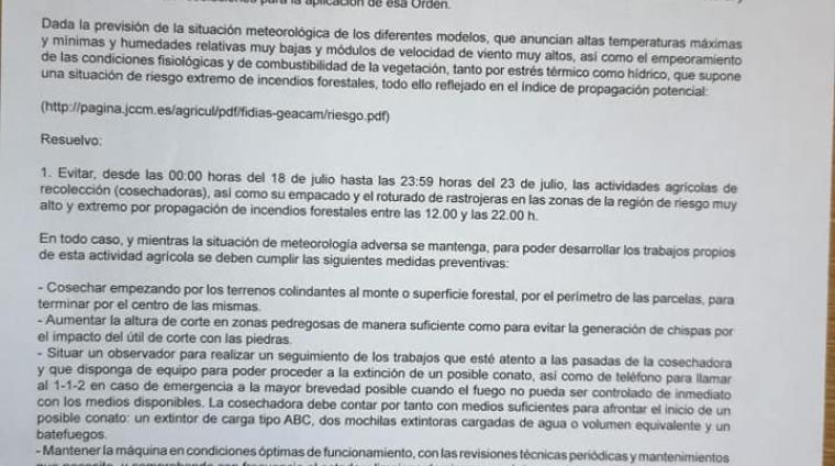 El Gobierno regional resuelve evitar el uso de maquinaria en las comarcas de máximo riesgo de propagación de incendios forestales ante las adversas condiciones meteorológicas