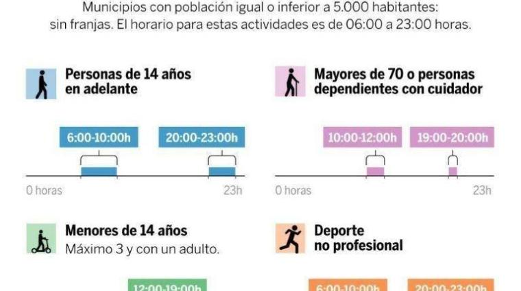 A partir del día 2 de Mayo se podrán realizar salidas para la práctica de ejercicio físico. Las franjas horarias son las siguientes: Actividades deportivas