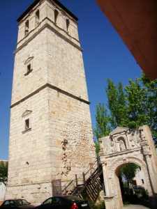 Único vestigio de la desaparecida iglesia parroquial de San Martín obispo, junto a su recuperada portada plateresca. Torre de planta cuadrada realizada en piedra caliza, estuvo rematada por un chapitel de pizarra. Albergaba importantes capillas de familias como la de los Cárdenas o la de los Mesía de Figueroa; en uno de sus retablos figuraba una obra del afamado Tristán.