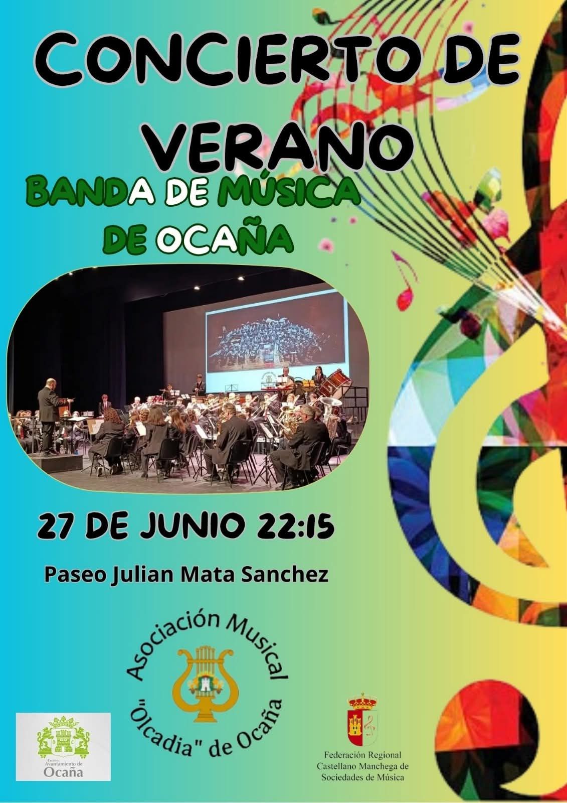 Noches de Verano 2025 Concierto de verano a cargo de la Banda de Música de Ocaña "Olcadia" en el Paseo Julián Mata, el Viernes 27 de Junio a las 22.15h