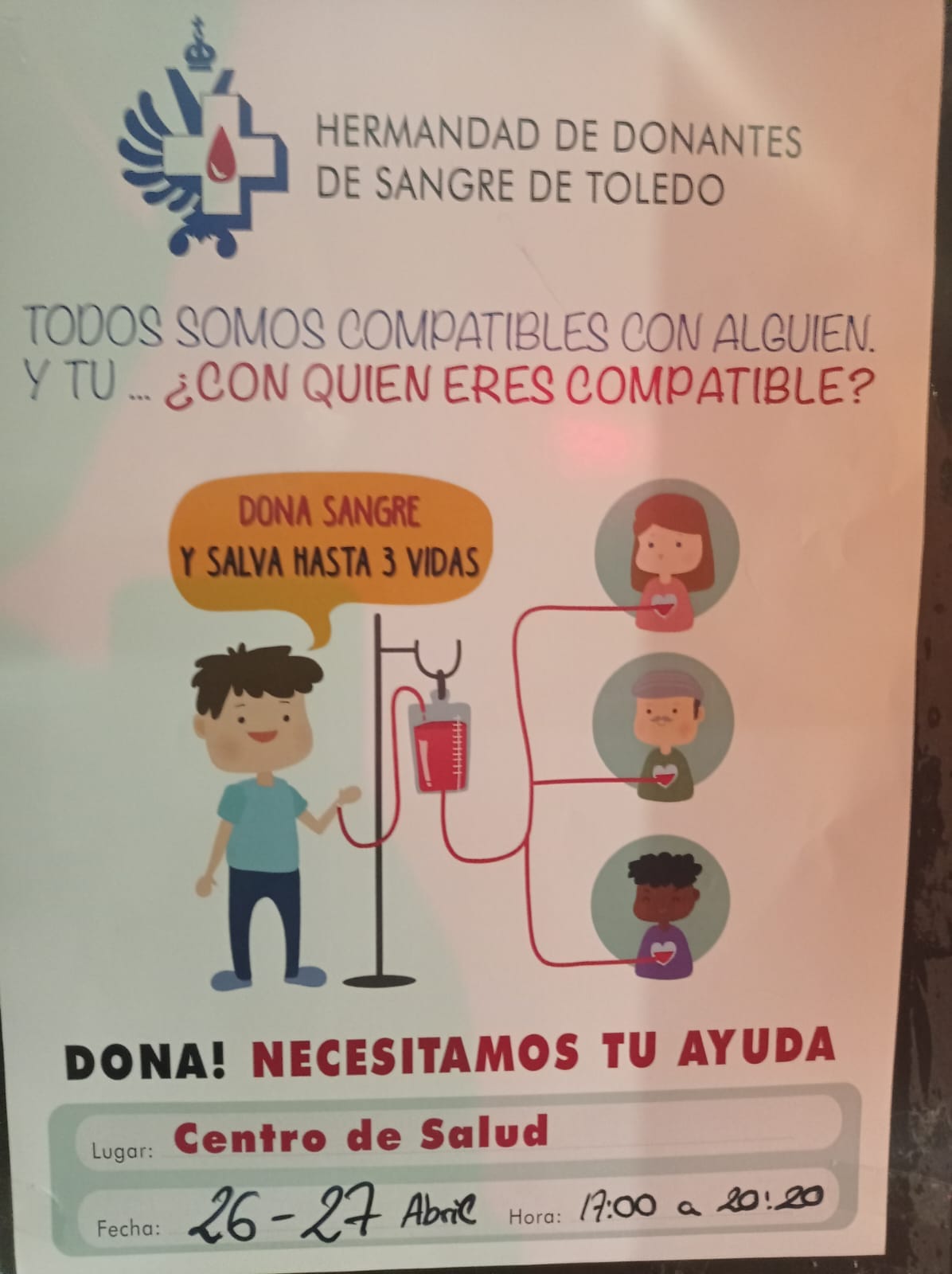 Dona sangre en el Centro de Salud los días 26 y 27 de abril y salva vidas.