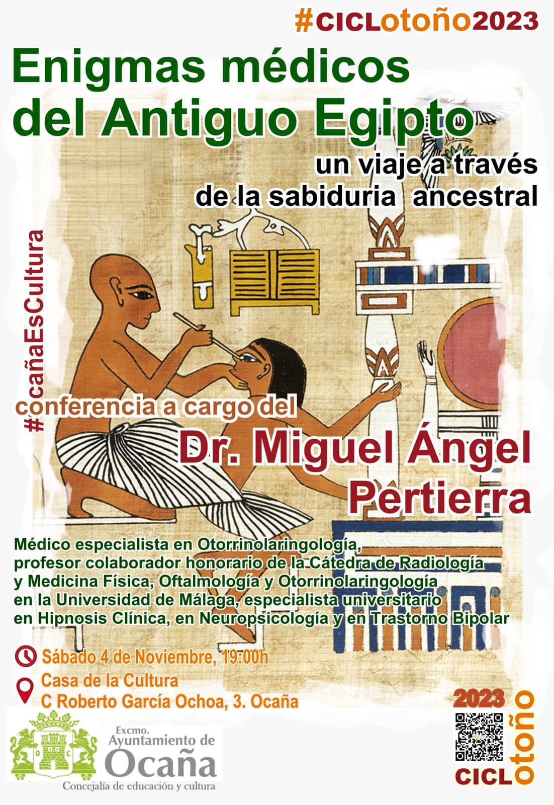 Conferencia a cargo del Dr. Miguel Ángel Pertierra: médico especialista en Otorrinolaringología, profesor colaborador honorario de la Cátedra de la Radiología y Medicina Física, Oftalmología y Otorrinolaringología en la Universidad de Málaga, especialista universitario en Hipnosis Clínica, en Neuropsicología y en Trastorno Bipolar.