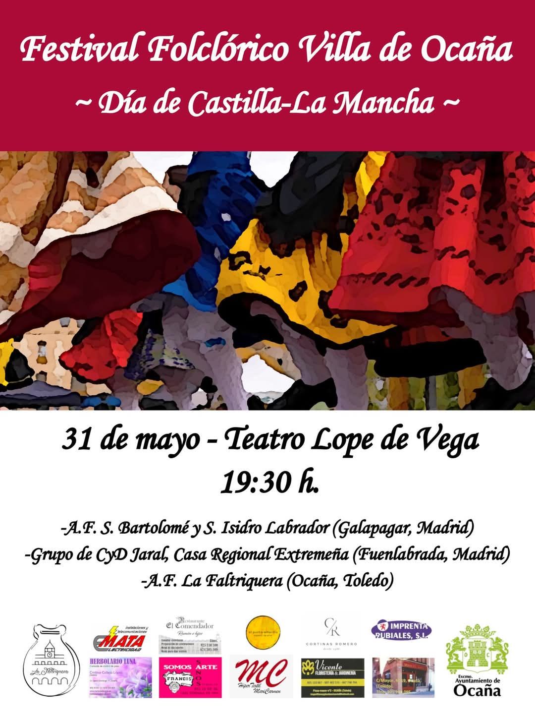 Vive el Día de Castilla-La Mancha con el Festival Folclórico Villa de Ocaña en el Teatro Lope de Vega a las 19.30 h.