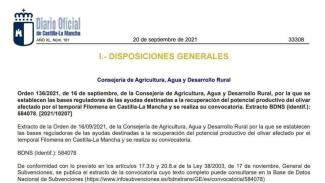 Hoy se abre el plazo para solicitar las ayudas a la recuperación del olivar afectado por Filomena y que la Conserjería de Agricultura de Castilla La-Mancha publica en el siguiente enlace: