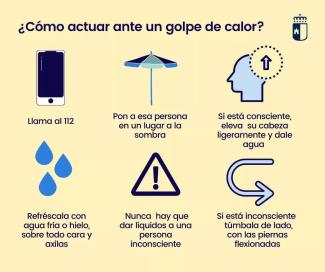 Un golpe de calor o shock térmico es uno de los casos más graves de hipertermia y en verano son más frecuentes de lo que pensamos. Si ocurre lo primero que hay que hacer es llamar al 112 y después seguir las recomendaciones de la imagen