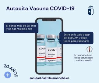 Ya está disponible la autocita para la vacunación COVID-19 para mayores de 20 años que no hayan recibido cita.