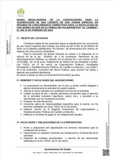 BASES ADJUDICACIÓN INSTALACIÓN 1 BARRA DE BAR DIA 10 DE FEBRERO PABELLÓN CUBIERTO EL CARMEN (Baile de carnaval)