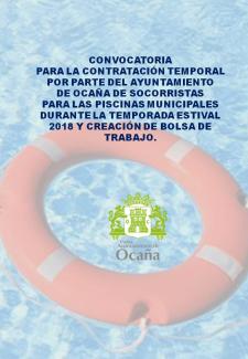CONVOCATORIA PARA LA CONTRATACIÓN TEMPORAL POR PARTE DEL AYUNTAMIENTO DE OCAÑA DE SOCORRISTAS PARA LAS PISCINAS MUNICIPALES DURANTE LA TEMPORADA ESTIVAL 2018 Y CREACIÓN DE BOLSA DE TRABAJO.
