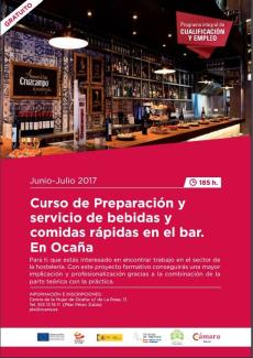 Curso de preparación y servicio de bebidas y comidas en el bar.