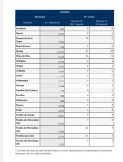 Municipio de Ocaña, semana 30 (del 26 al 1 de agosto)= 37 contagios COVID-19 y semana 31 (del 2 al 8 de agosto) = 33 contagios COVID-19