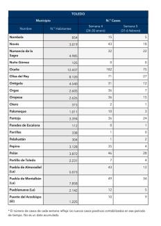 Municipio de Ocaña, semana 4 (del 24 al 30 de enero) = 182 contagios COVID-19 y semana 5 (del 31 al 6 de febrero) = 75 contagios COVID-19