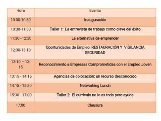 Programa de la feria del Empleo y el Emprendimiento.
