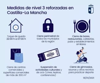 Consulta todas las medidas en: https://sanidad.castillalamancha.es/ciudadanos/enfermedades-infecciosas/coronavirus/transicion-hacia-una-nueva-normalidad/medidas-especiales-de-contencion-frente-covid-19/medidas-especiales-nivel-3/medidas-reforzadas-castilla-la-mancha?fbclid=IwAR2suL1mDJz8Wjgm-wBww8CDk8WieCEXRM17G-M7w9-CXA-FPHCVQgRoCzk