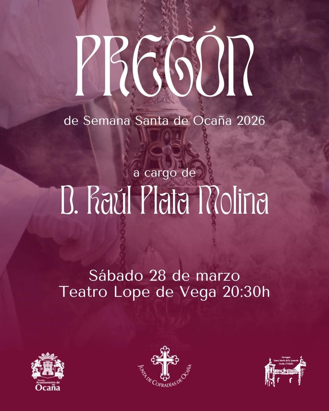 Vive el pregón de Semana Santa a cargo de Raúl Plata Molina en el Teatro Lope de Vega el sábado 28 de marzo a las 20.30 h.