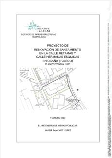 RECIBIDO POR PARTE DE DIPUTACIÓN DE TOLEDO EL PROYECTO DE RENOVACIÓN DE SANEAMIENTO EN LA CALLE RETAMAS Y CALLE HERMANAS ESQUINAS