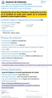 En el día de hoy se inicia el plazo para que las empresas interesadas presenten oferta para realizar la obra de construcción de paso peatonal e iluminación en antigua N-IVa del municipio de Ocaña.