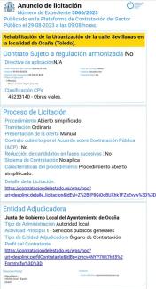 En el día de hoy se inicia el plazo para que las empresas interesadas presenten oferta para realizar la obra de construcción de la urbanización de la calle Sevillanas del municipio de Ocaña.