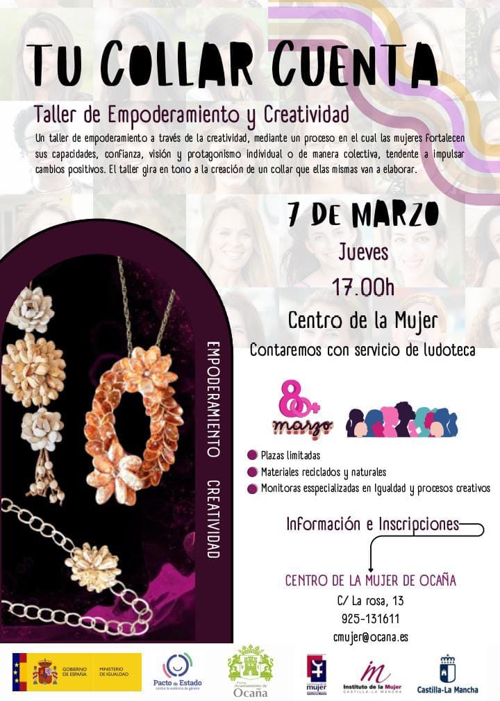 Taller de Empoderamiento y Creatividad Día: Jueves 7 de marzo a las 17.00 h. en el Centro de la Mujer.