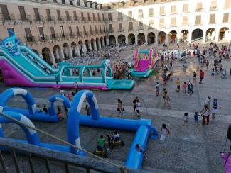 Gran tarde para los niñ@s en la Plaza Mayor, hinchables, hinchables con agua y pista de cars. Mucha diversión.